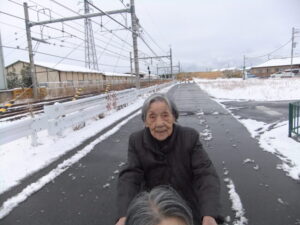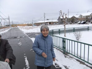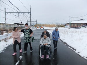 雪を見ながら散歩をして「寒いねー」「空気が冷たいねー」