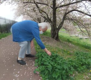 桜の下に大きな葉っぱのクローバーがたくさん☘☘☘