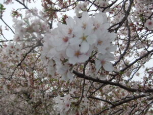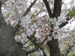 花曇りの日で薄い桜色はぼやけてしまいそうですが