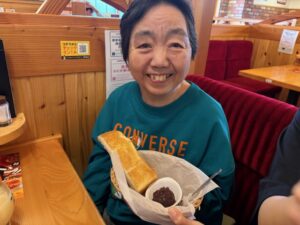 飲み物にサービスのトーストが来ました!