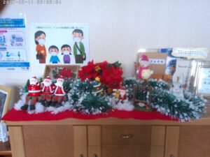 玄関がとてもクリスマス仕様になってますね😊 散歩に行く際に 利用者様ももうそんな次期にったのねとクリスマスを楽しみにしていました。