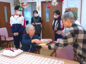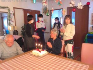 誕生日会の日では職場体験に来ていただいた。学生さんも 一緒にお祝いをしてくださいました。【写真掲載 了承済】