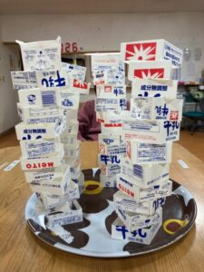 牛乳パックを切ったものを積み上げるだけなのですが・・
