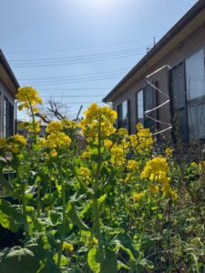 中庭に植えた菜の花がきれいに咲いています