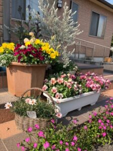 ホームの玄関先のお花も満開となりました。