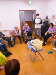 普段は穏やかな皆様ですが、勝負事となると眠っていた(?)闘争心に火がついたようです。職員も負けじとカゴを揺らし、会場は大盛り上がりとなりました。