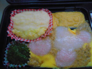 鰻ちらしも盛り付けて綺麗なお弁当が出来上がりました。