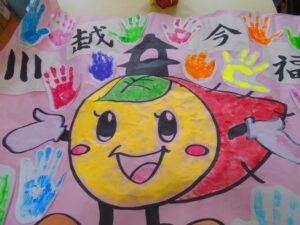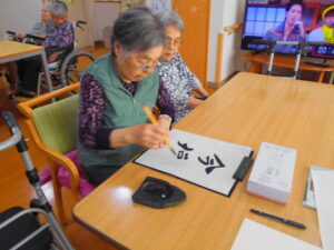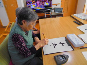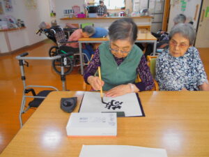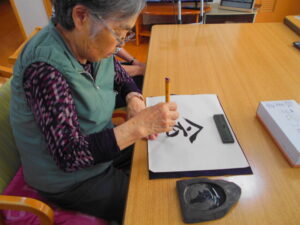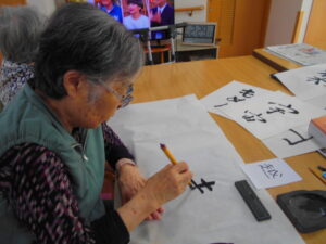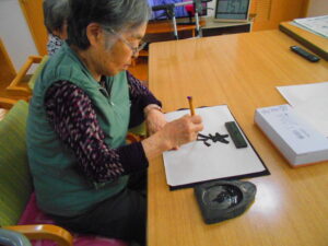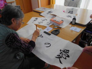 最後、大きな和紙に「愛の家川越今福」とホームの名前を書いて頂きました。