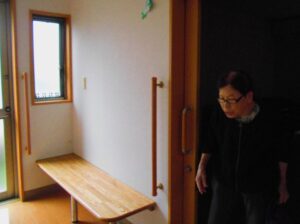 大きな声で入居者様にお伝えしながら、非常ベルを押します。