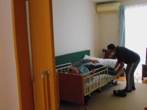 入居者様を起こして