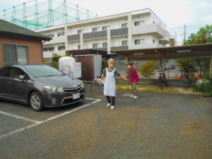 非常口からフェンスの外に出たら駐車場です。