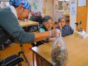 入居者様に見せても大丈夫ですか?と伺ったら、快諾してくださり巣を持ってホームの中に入って下さいました。