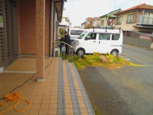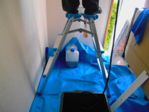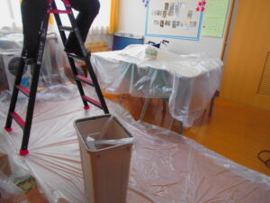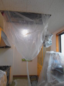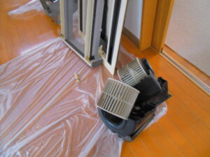 こんな感じで床などが汚れない様に養生してから作業を開始です。