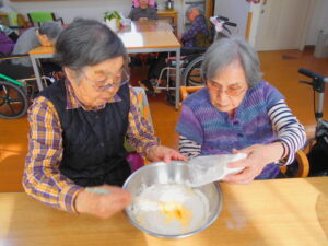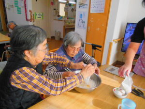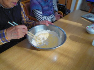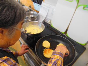 一枚目はホーム長が「こんな感じね」と焼いてみて