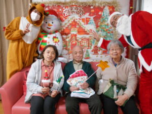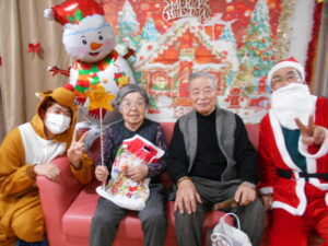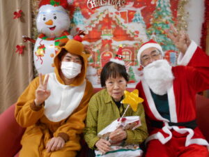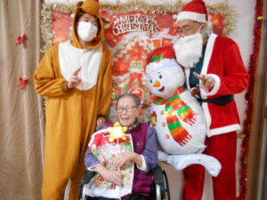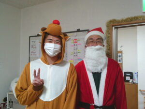 スタッフがサンタさんとトナカイになってくれました。