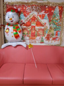 こんなフォトスポットでプレゼントをお渡しして写真撮影です。