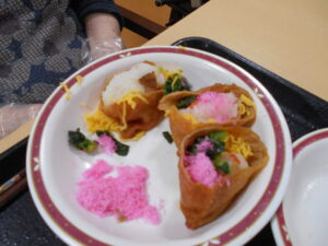 簡単な作業ですが、実際やってみると油揚げがフニャフニャしていて、ちょっと難しいです。