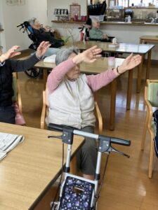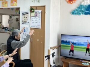 ホームでは毎日午前中に体操の時間があります。