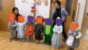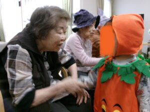 去年と同様に近くの保育園の子供たちが仮装してホームに遊びにきてくれました!