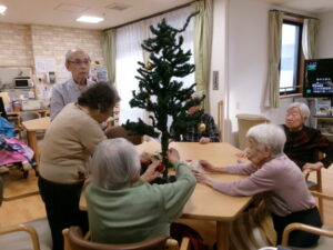 男性入居者様には、上の飾り付けをお願いしました!