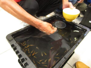 ご利用者様にメダカすくいのお手伝いをしていただきました。