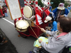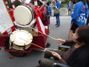 係りのお兄さんが「太鼓叩きます?」と声を掛けてくださいました。
