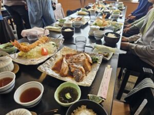 皆様、【お刺身定食】や【煮魚定食】、【エビフライ定食】を頼まれてしました。
