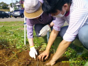 6月に植えたさつまいもの大きさが、いい具合になったので、10月に入ってから入居者様とスタッフで収穫しました!
