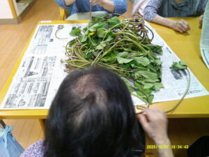 蔓は入居者様から皮をむいて頂き、煮てから、食しました!