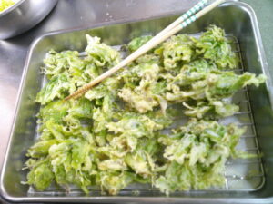 早速ゴミ取りを手伝って下さり、昼食には天ぷらになって、皆さんに召し上がっていただきました!