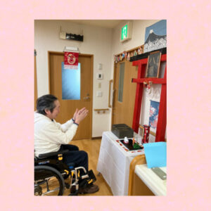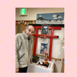 元旦は、スタッフ手作りの「神社」で