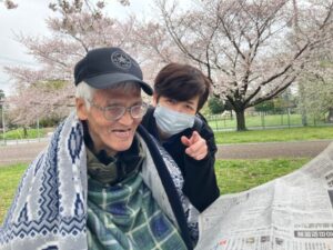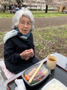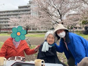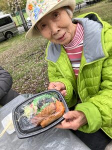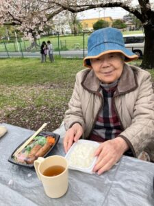 桜を満喫しながら入居者様の娘さんが働くお弁当屋さんの特製お惣菜でお昼ご飯。