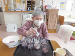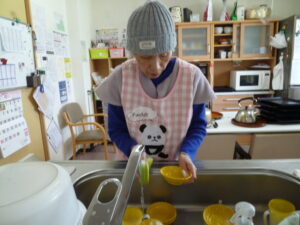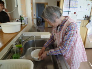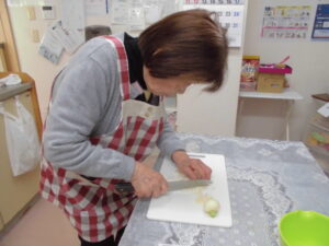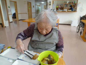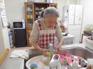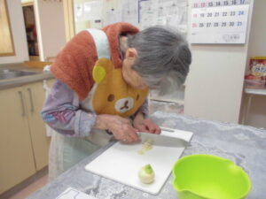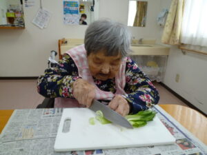 さかほぎではご入居者様に調理に参加して頂いています。