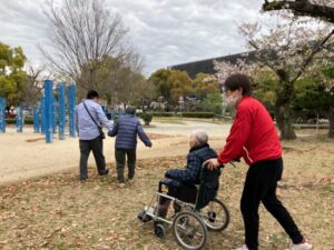 前日の雨も感じさせないほど、皆様が足取りが軽やかで、車椅子でも難なく散歩することができました♬