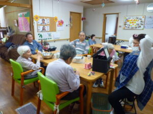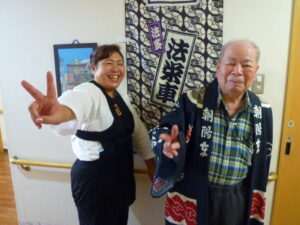 男性入居者様は「まだ顔に色々塗るだか?もういいじゃないか?」と女性の化粧の大変さに半分あきれ顔でした(笑)