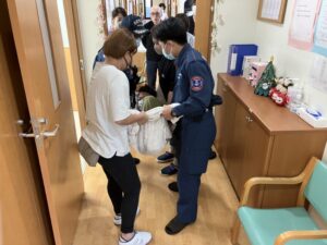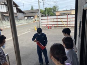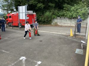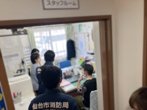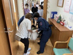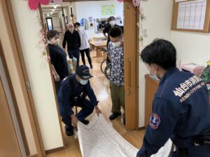 実際に消防士の方にオペレーター役をしていただき通報訓練を行いました。