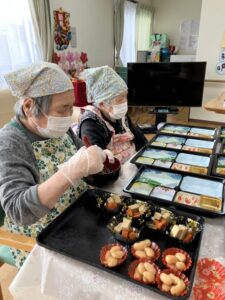 つばきユニットではご入居者様と一緒にお正月弁当作り