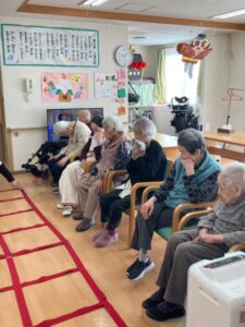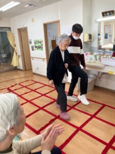ふまねっと体操とは、専用のネットをまたぎながらリズムに乗って歩行する室内運動レクです。頭と体に同時に刺激を送ることが出来、認知症の緩和と、身体機能の維持向上に効果的なレクです。