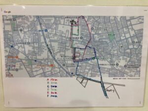 散歩から帰ってきたら、歩いた距離に応じて該当のアルファベットのスタンプを押していただきます。
