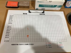 いつかその公園に全員で歩いてお出かけできる日を目指して、毎日楽しく散歩に行っていただくために、ある表を玄関に設置しました。
