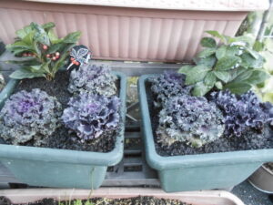 プランターいっぱいに並んだ葉牡丹は