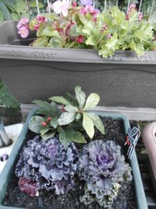 プランターいっぱいに並んだ葉牡丹は