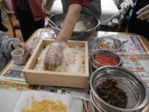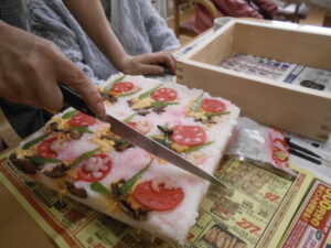 朝から岩国の名物料理の「押し寿司」作りに