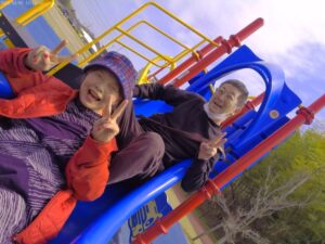 広場にある遊具で遊んでみました