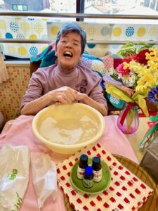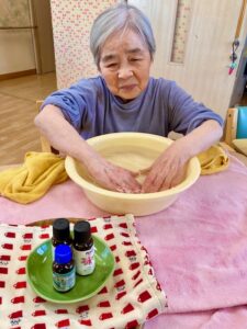 今日はアロマのお湯で手浴タイム🛁