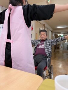 利用者さんはニコニコしながら先に動いていて