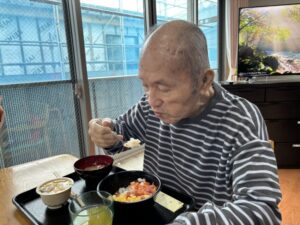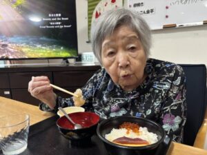 お昼は海鮮丼と茶わん蒸しでお祝いです!