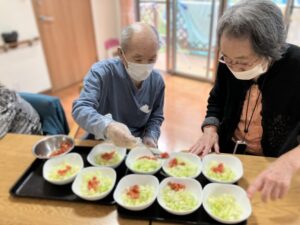 サラダの盛り付けおねがいします!