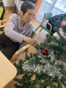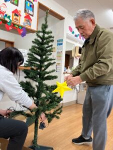 利用者様とツリーを飾ったり