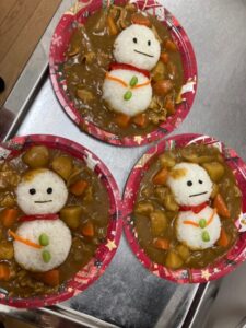 食事はオードブルと雪だるまカレーです☃